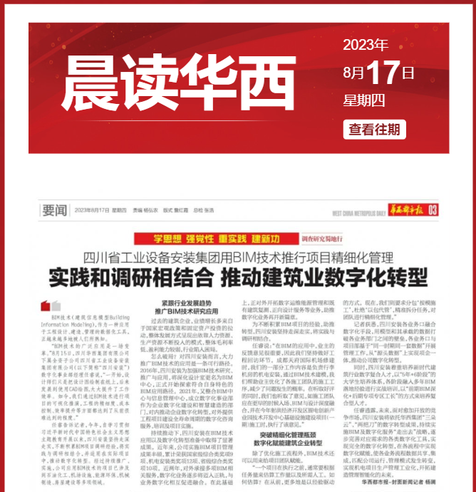 【封面消息】四川省财产装备装置团体用BIM手艺奉行名目邃密化办理