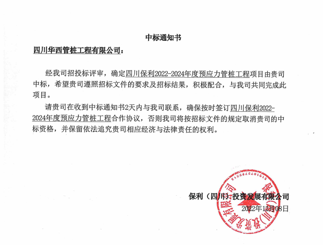 1十月8日,华西绿寒舍属子工司华西管桩传出去喜报,胜者进标单位湖南保利2022-202历经四年度预承载力管桩工作名头,进标单位刷卡金额达1.45000万元。也是继十月华西管桩胜者进标单位半空客运车无人机全之虞周期公式处事名头的再添大喜信。
