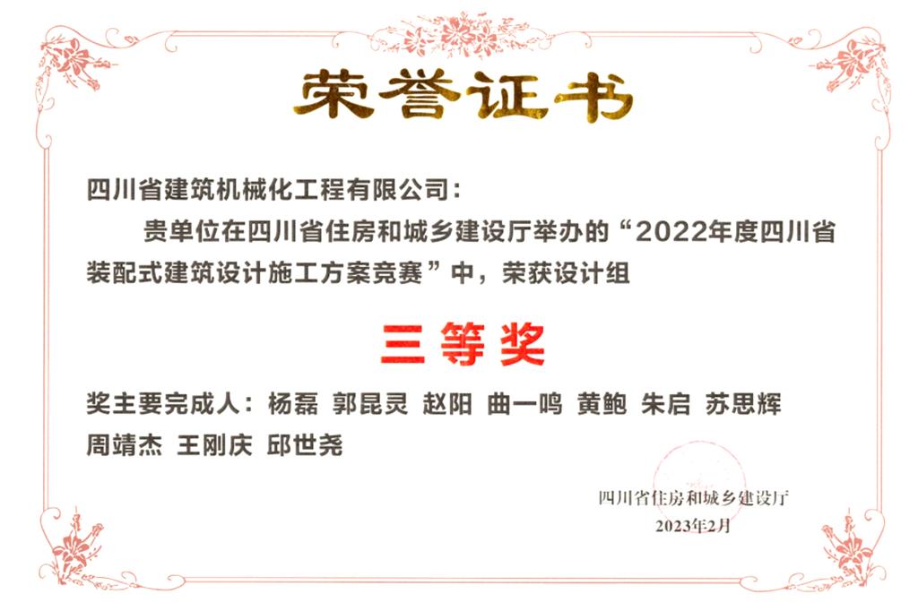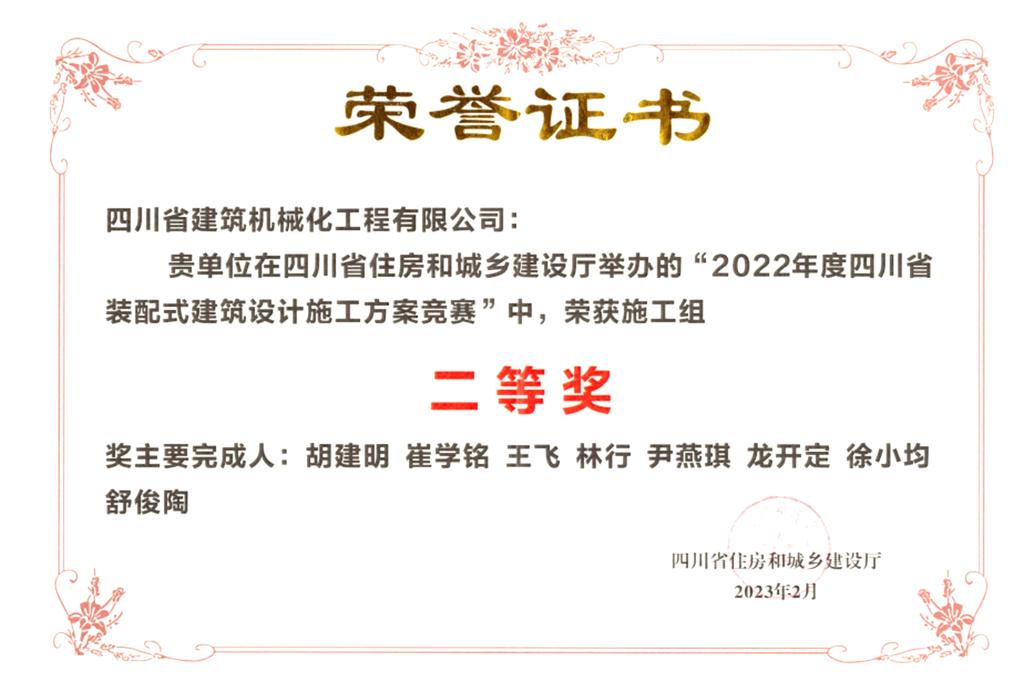 四川机司荣获“2022年四川省拆卸式修扶植想施工计划比赛”二、三等奖